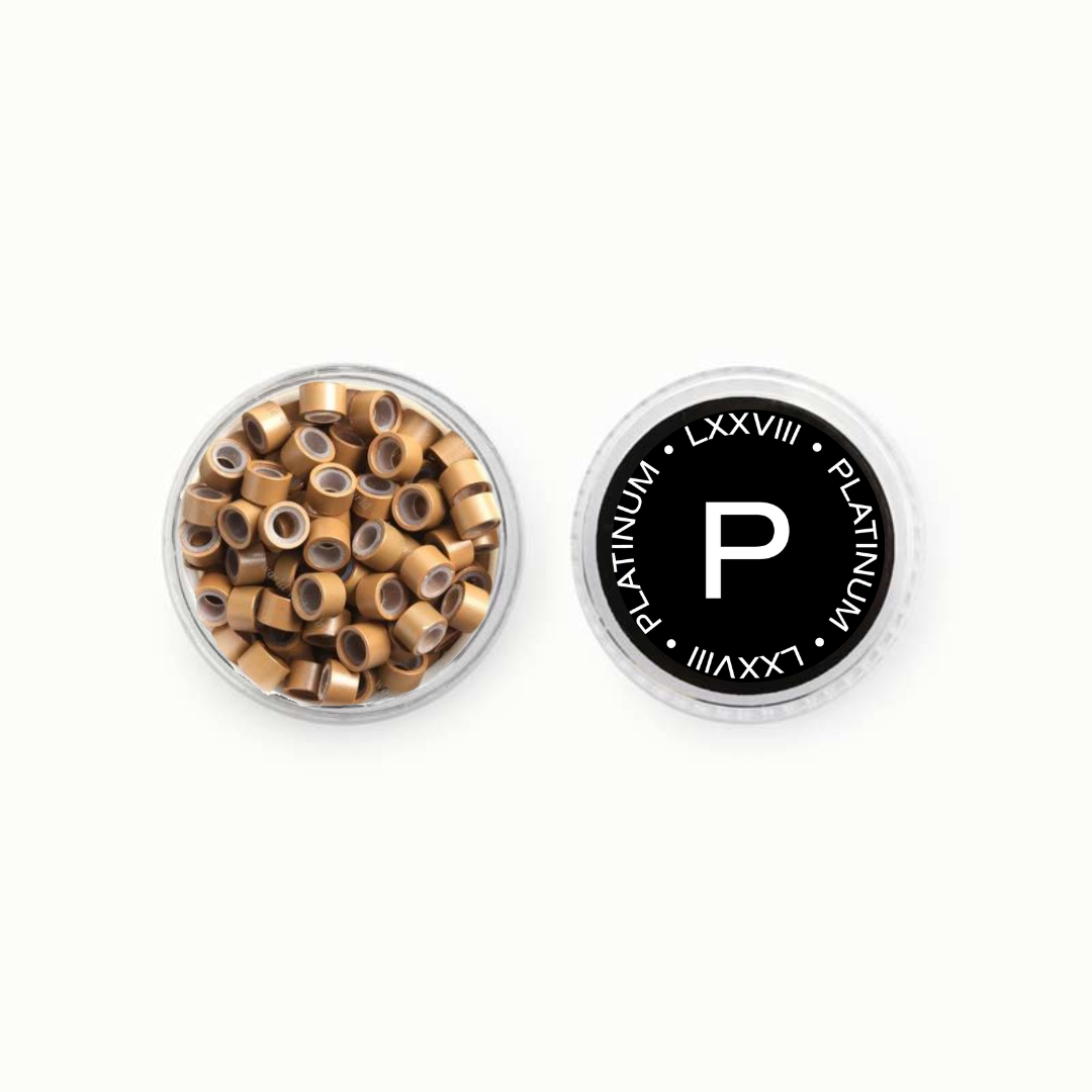 These dark blonde microbeads can be used with the Pixie-Link application process. Available with silicone or without. Microbeads can be used to apply and reapply our weft and microbead hair extensions.