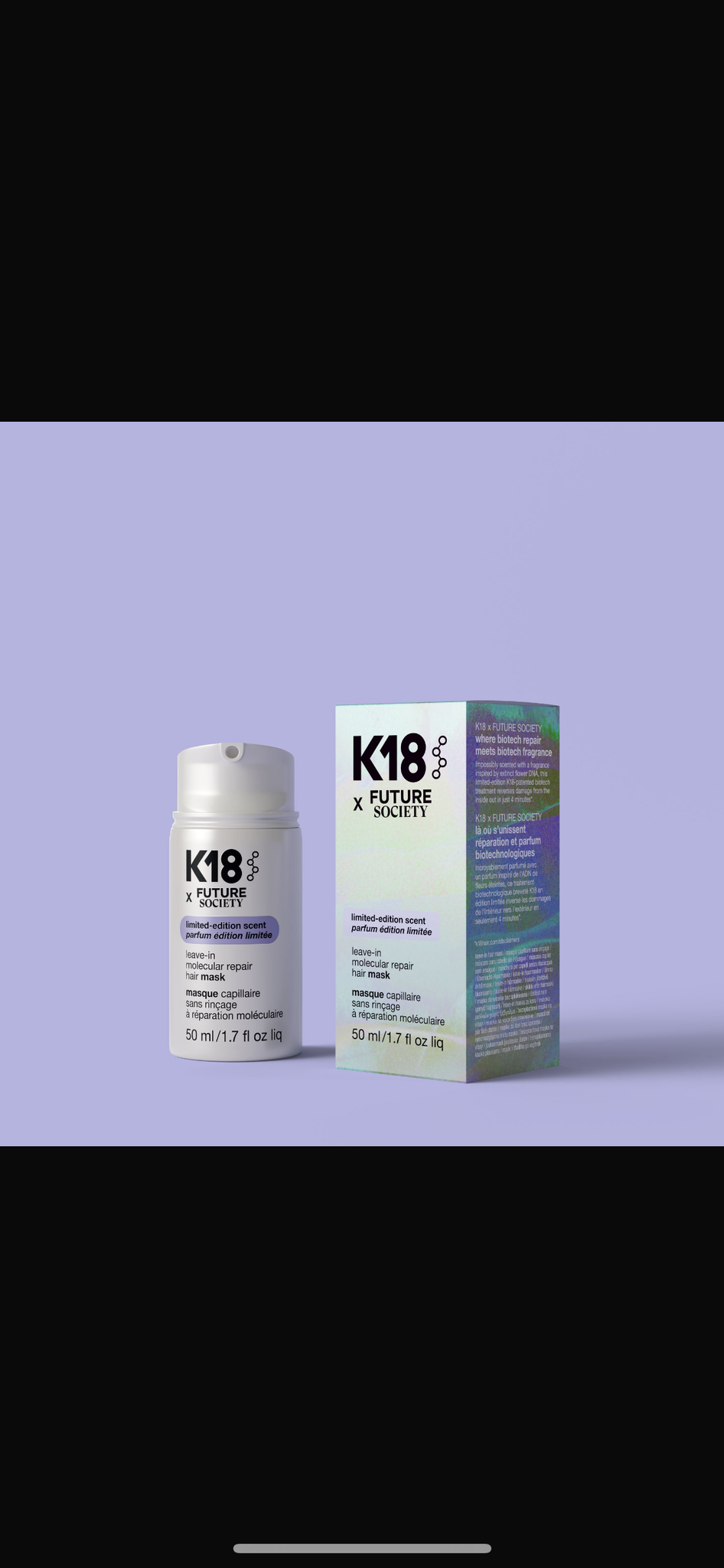 Give hair a fragrant revival with K18 Future Society Leave-In Molecular Hair Mask. It is a specialised treatment that infuses hair with a unique and refreshing scent while strengthening, softening and adding a healthy gloss.